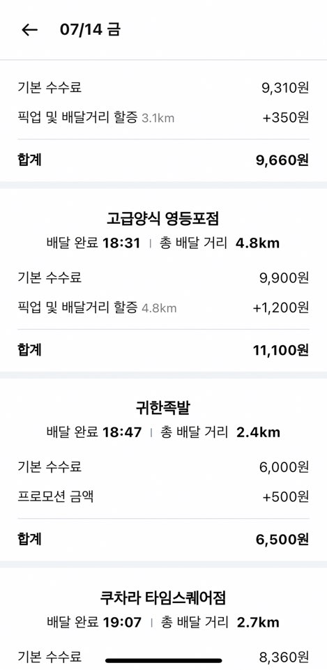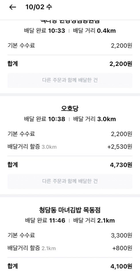 배달 아르바이트하면서 돈 벌었을 때 단가