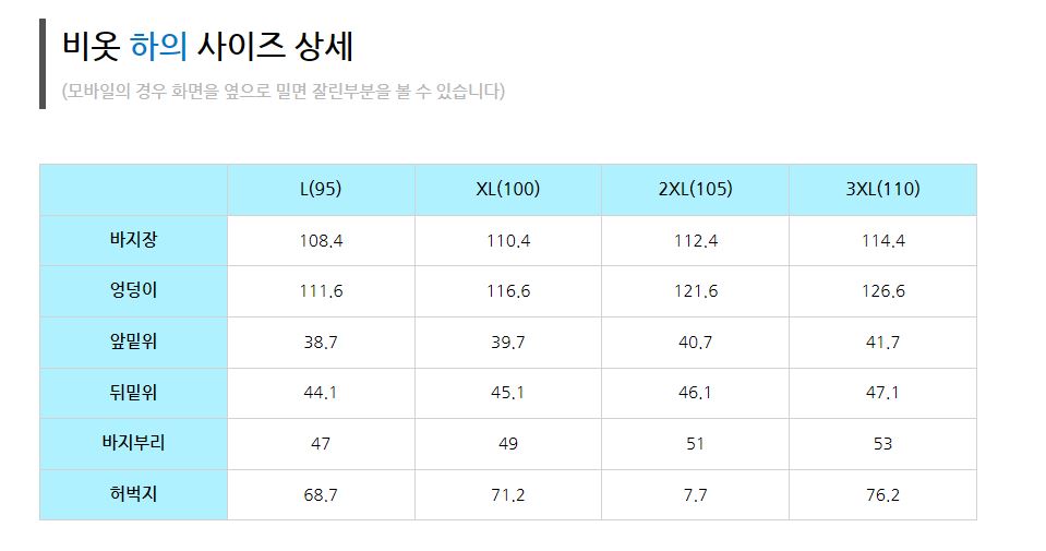 105사이즈는 상의가 엄청 크고