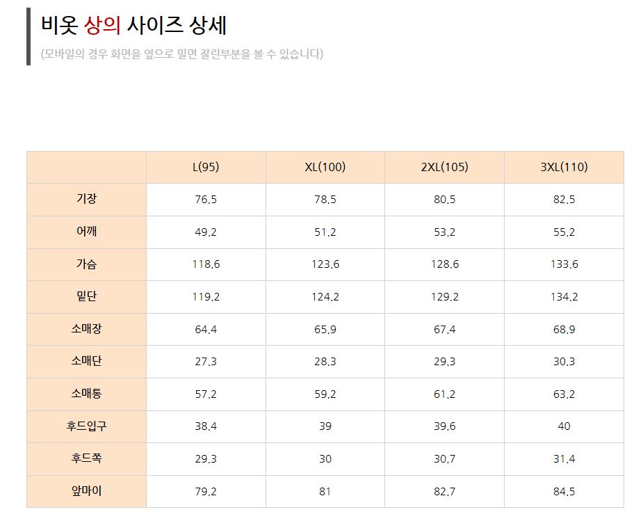 보통 체격이신 분들은 100,XL 사이즈 추천드립니다
