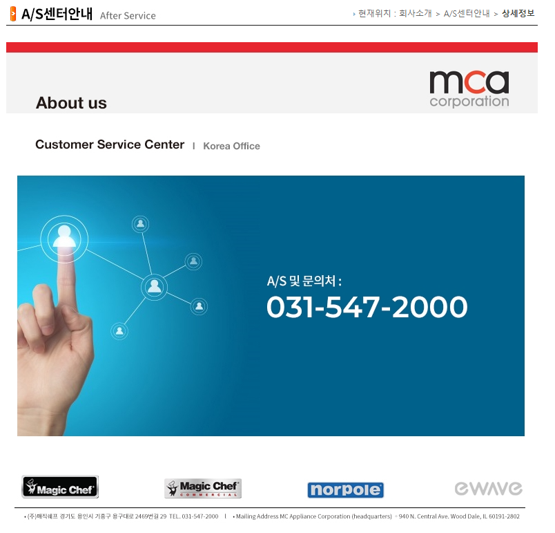 매직쉐프 as 서비스센터 홈페이지인데 정말 전화번호 하나만 있습니다.