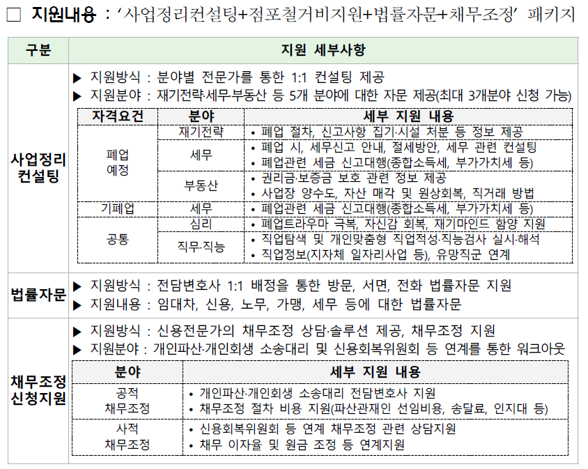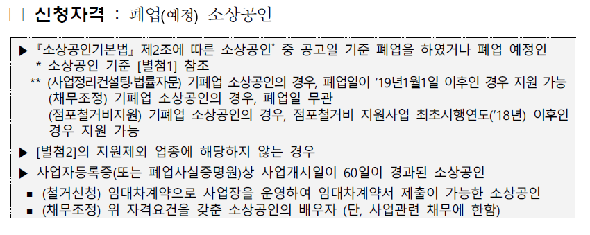 '폐업예정 및 폐업 소상공인 자영업자'들에게